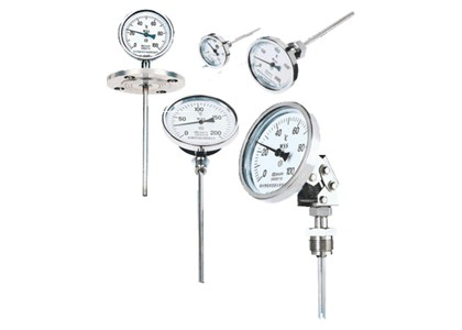雙金屬溫度計(jì)是基于繞制成環(huán)性彎曲狀的雙金屬片組成。一端受熱膨脹時(shí),帶動(dòng)指針旋轉(zhuǎn),工作儀表便顯示出熱電勢(shì)所應(yīng)的溫度值。
